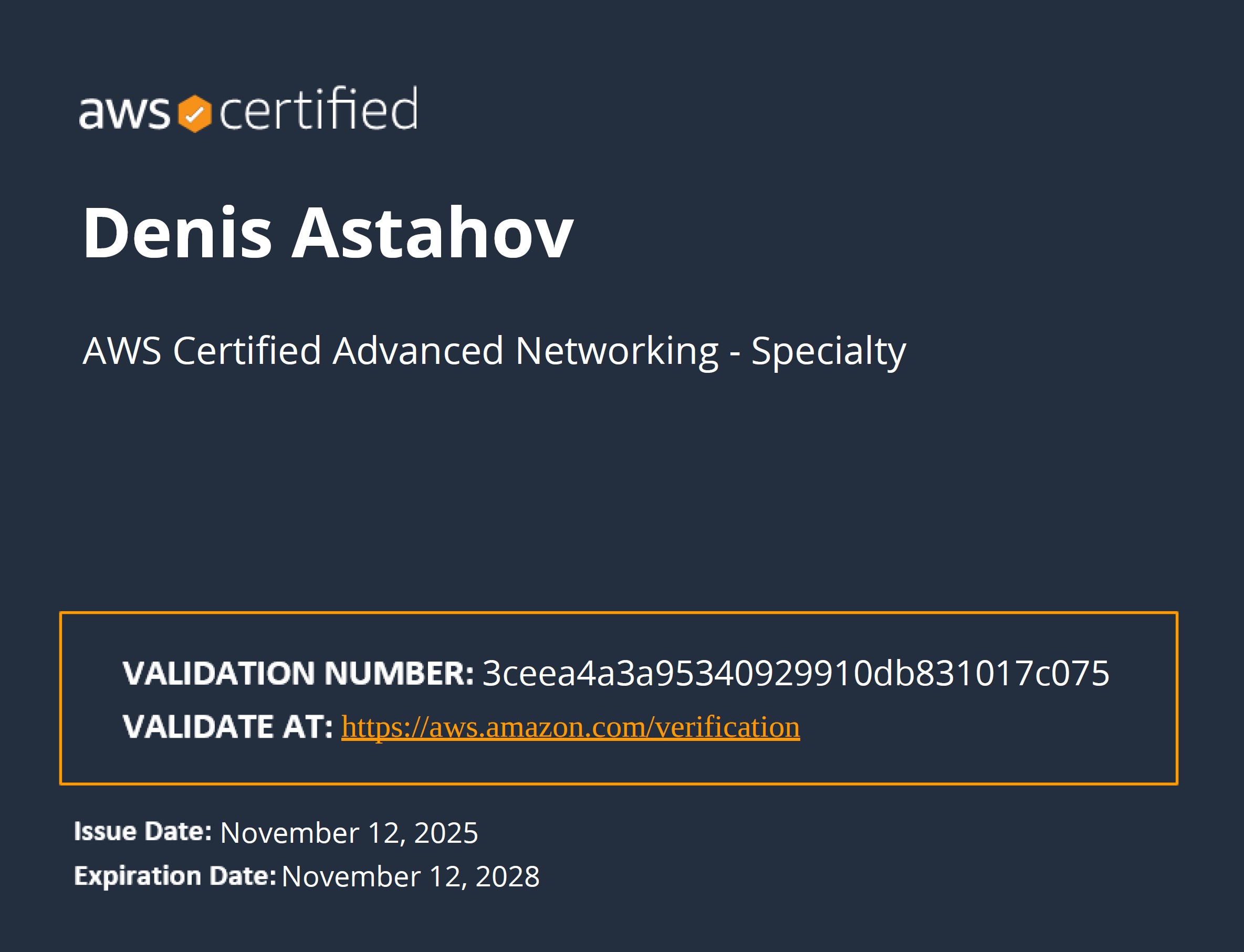 My IT Certifications: MTA: Microsoft Technology Associate - Networking MTA: Microsoft Technology Associate - Windows Server Administration LPI : Linux Professional Institute - LPI LINUX Essentials New Relic - New Relic Certified Performance Pro SumoLogic - Certified Sumo Pro User - Level1 SumoLogic - Certified Sumo Power Admin - Level3 AWS: Amazon Web Services - Solutions Architect Associate AWS: Amazon Web Services - Developer Associate AWS: Amazon Web Services - SysOps Administrator Associate AWS: Amazon Web Services - Cloud Practitioner AWS: Amazon Web Services - DevOps Engineer Professional AWS: Amazon Web Services - Solutions Architect Professional GCP: Google Cloud Platform - Associate Cloud Engineer GCP: Google Cloud Platform - Professional Cloud Architect AWS: Amazon Web Services - Security Specialty AWS: Amazon Web Services - Machine Learning Specialty AWS: Amazon Web Services - SAP on AWS Specialty AWS: Amazon Web Services - Data Engineer Associate AWS: Amazon Web Services - AI Practitioner AWS: Amazon Web Services - Machine Learning Engineer Associate AWS: Amazon Web Services - Advanced Networking Specialy Microsoft Azure: - Azure Fundamentals HashiCorp - Terraform Associate HashiCorp - Terraform Implementation Partner Databricks - Data Analyst Associate Databricks - Data Engineer Associate | |